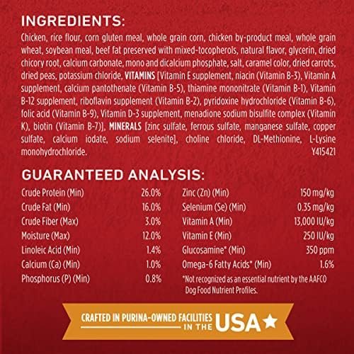 • 100% Complete Balanced Nutrition: Every dog food bag offers 100 percent complete and balanced nutrition, combined with natural glucosamine from rice formula supporting joints.