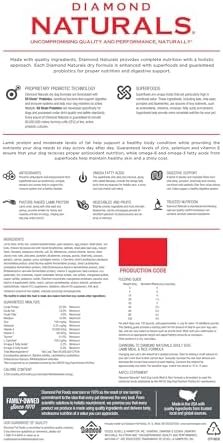 Compared to Taste of the Wild Lamb Formula and Blue Buffalo Life Protection Lamb & Brown Rice, lamb dogfood by Diamond Naturals typically offers a more affordable price per pound in its 40lb dog food bag. All three use real lamb protein, but Diamond Naturals stands out by including proprietary K9 probiotics and superfoods for joint health support and balanced nutrition for dogs. While Taste of the Wild features grain-free options and Blue Buffalo is known for its LifeSource Bits, Diamond Naturals provides a solid warranty, fast US-based support, and transparency in sourcing—making it a trusted choice for picky pet owners focused on balanced daily feeding and dry dog kibble quality.