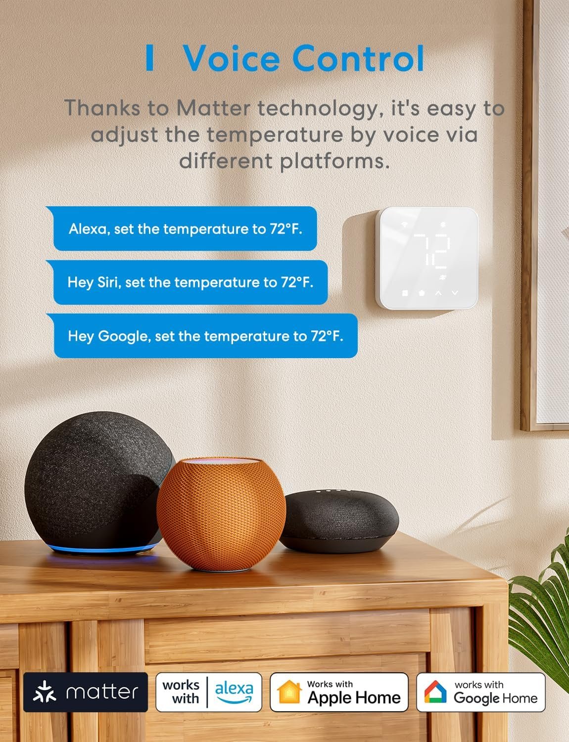 Upgrade your home’s comfort with the Meross Smart Thermostat (MTS300), designed for seamless temperature control and energy efficiency. Compatible with Matter, Alexa, and Google Assistant, it lets you manage heating from anywhere via the Meross app. Its sleek design and intuitive interface make climate co