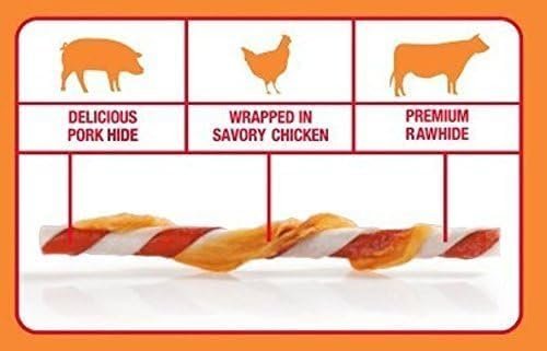 When comparing rawhide treats to similar protein dog treats like DreamBone Twist Sticks and Pet Factory Beefhide, several distinctions emerge. Good ‘N’ Fun Triple Flavor Twist chews typically offer a lower cost-per-treat in the 70 count treats bag and deliver the unique triple flavor combination rarely found in basic chicken wrapped chews. Most competitors have a single-protein, non-twisted form, which means less dental action and shorter chew time. Warranties and satisfaction guarantees are comparable, but fan-favorite status for these natural dog chews comes from their longer-lasting nature and higher owner ratings, as found on major retail sites.